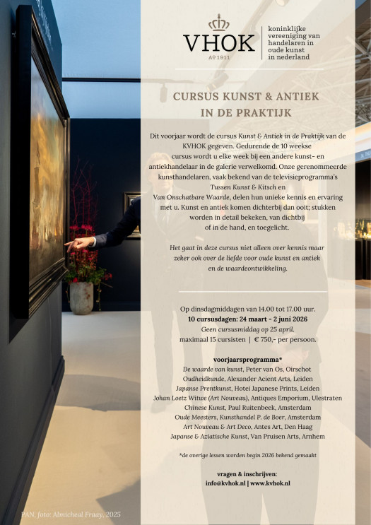 Het gaat in deze cursus niet alleen over kennis, maar zeker ook over de liefde voor kunst en antiek en de handel. De cursus bestaat uit 10 dinsdagmiddagen van 14.00 uur tot ca. 17.00 uur en wordt gegeven op verschillende locaties in Nederland in een groep van maximaal 15 personen.